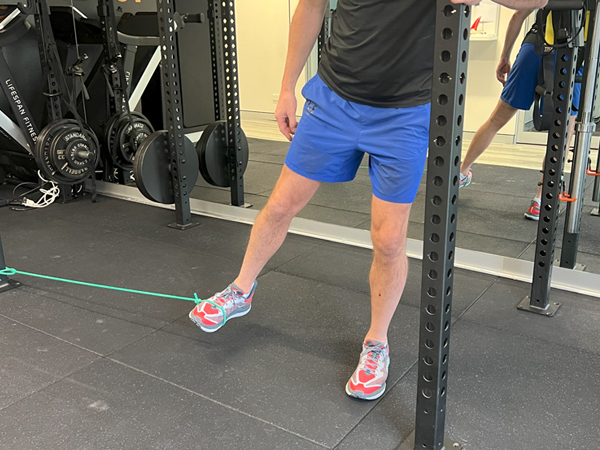 Low level static (isometric) strengthening for the hip adductors in hip flexion - where they are weakest. It is also an ideal functional exercise as we isolate the hip adductors unilaterally.