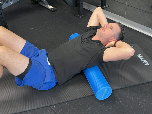 This advances the thoracic extension component of the table top stretch, to further increase thoracic extension to help with improve overhead flexion ROM and general overhead movement and posture.